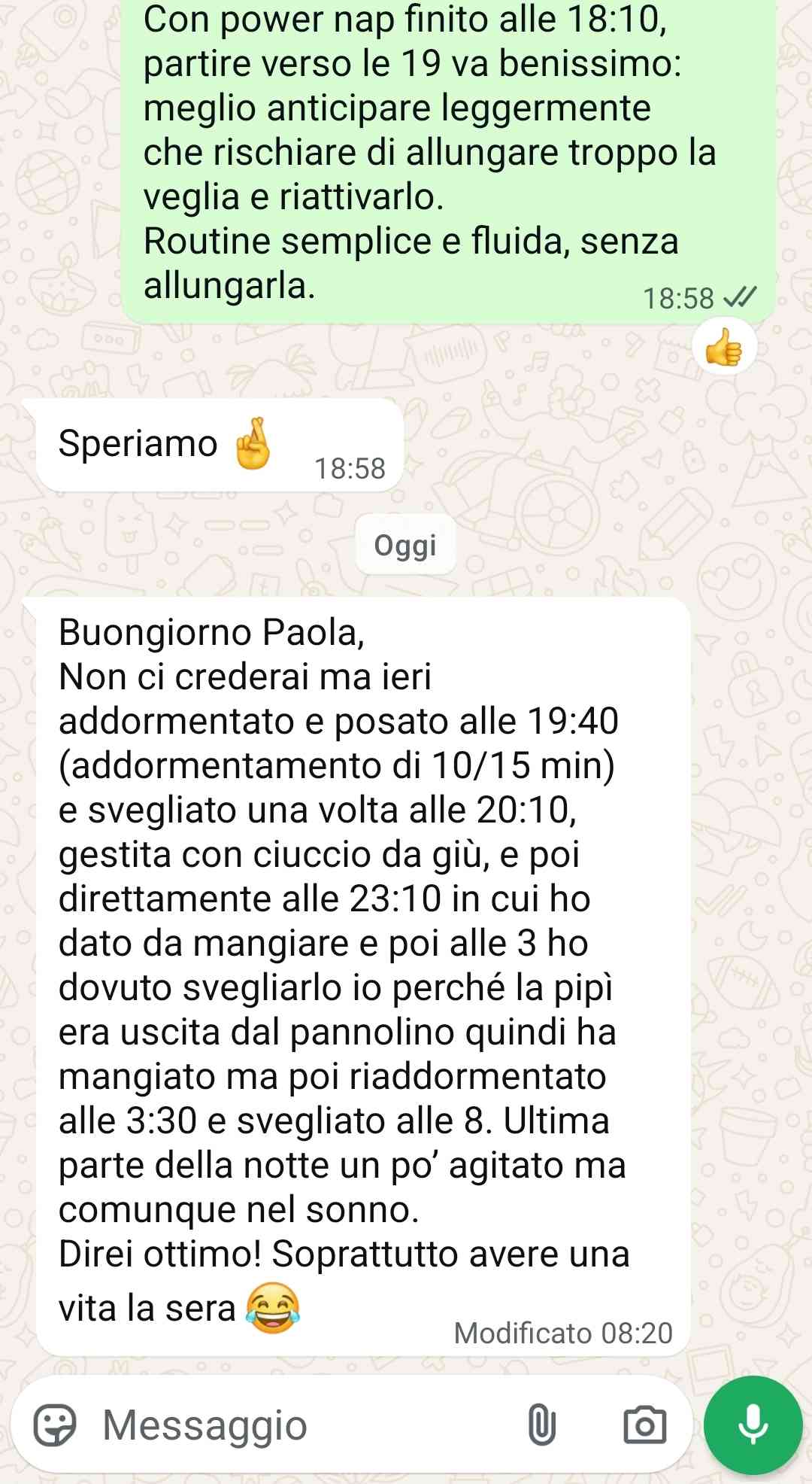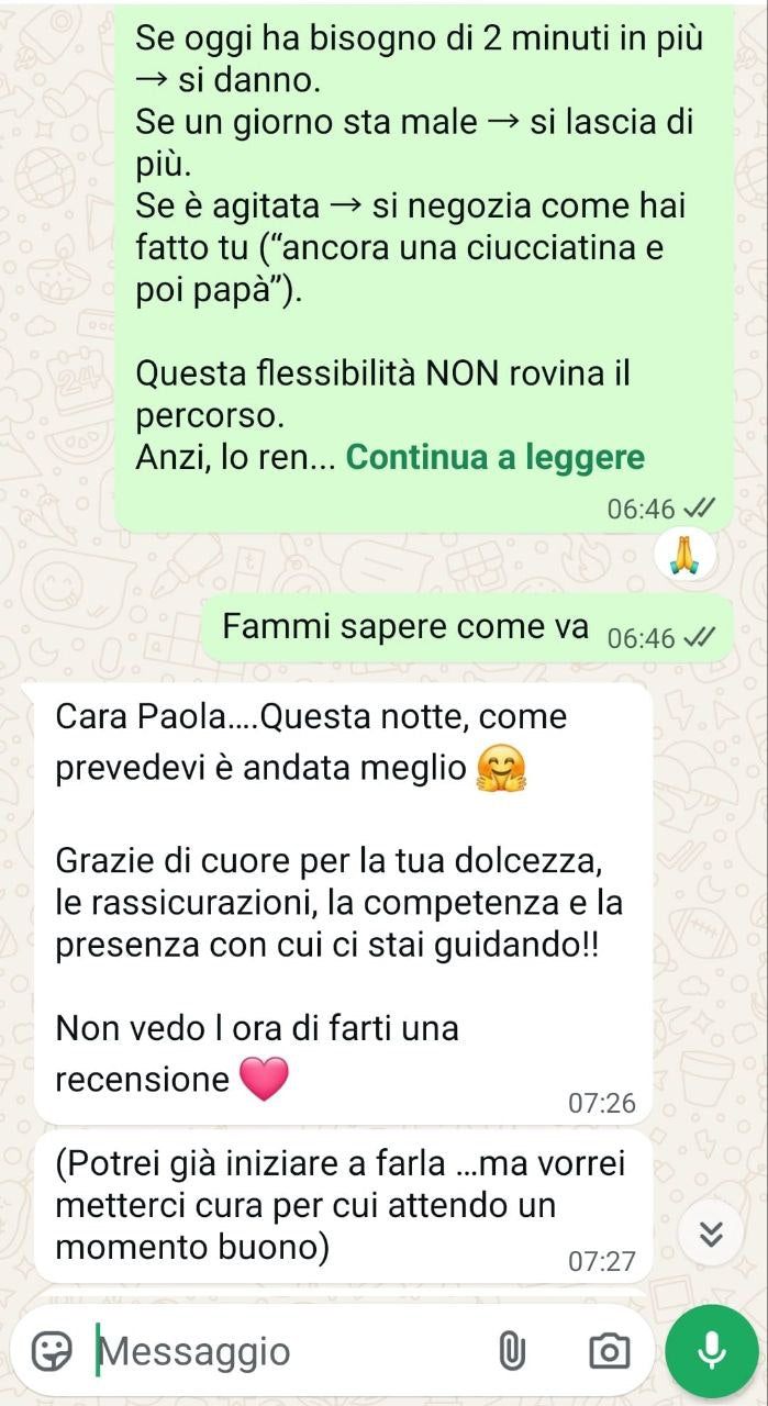 👩👩👦 60 giorni di consulenze personalizzate → supporto diretto e continuo direttamente con Paola, per costruire insieme un percorso su misura che accompagni il tuo bambino verso un sonno sereno e il tuo benessere quotidiano.