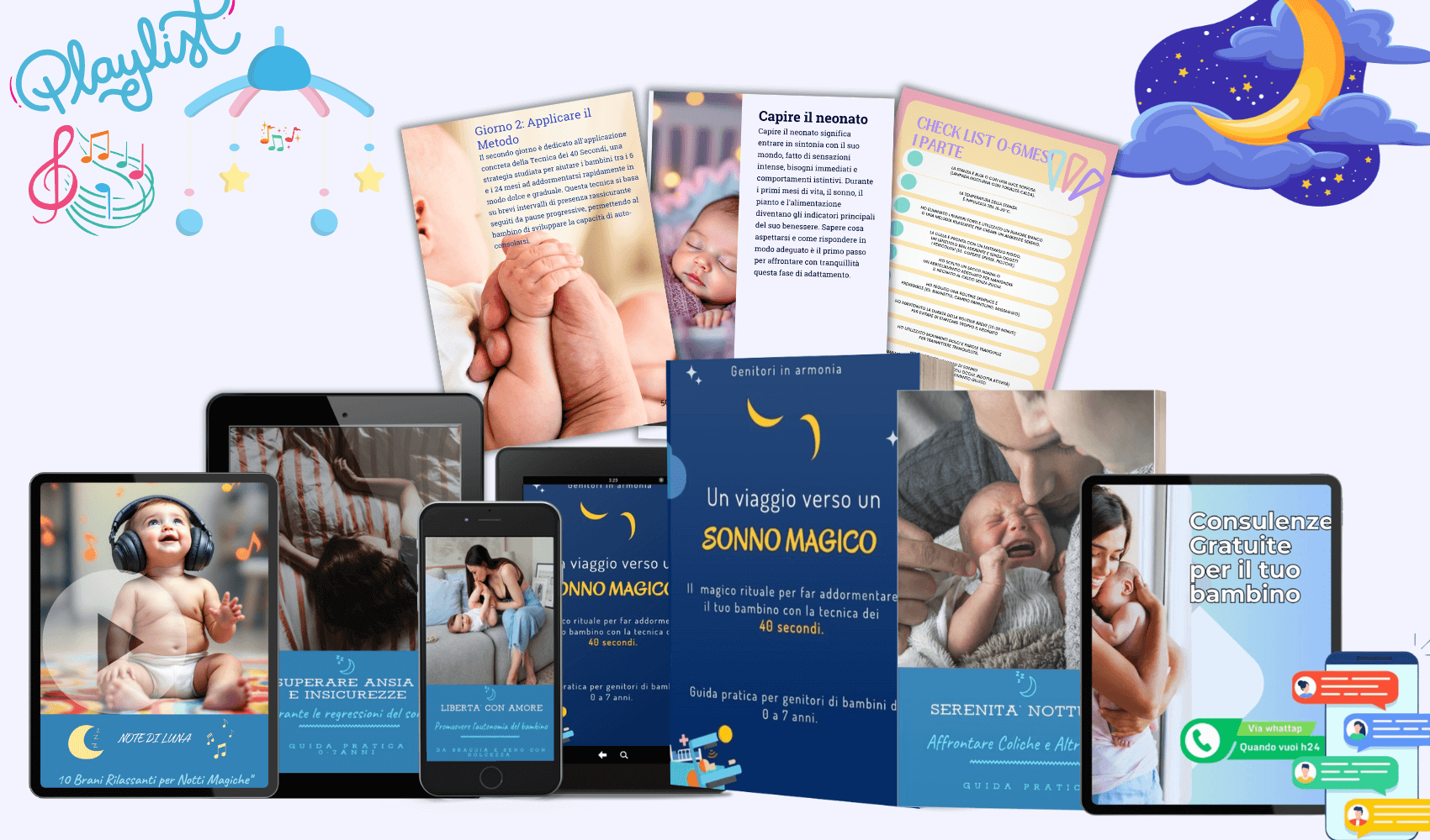 📝 4 Bonus esclusivi → guida per addormentare senza seno, supporto per superare ansia e insicurezza, strategie pratiche per la gestione delle coliche e playlist rilassanti