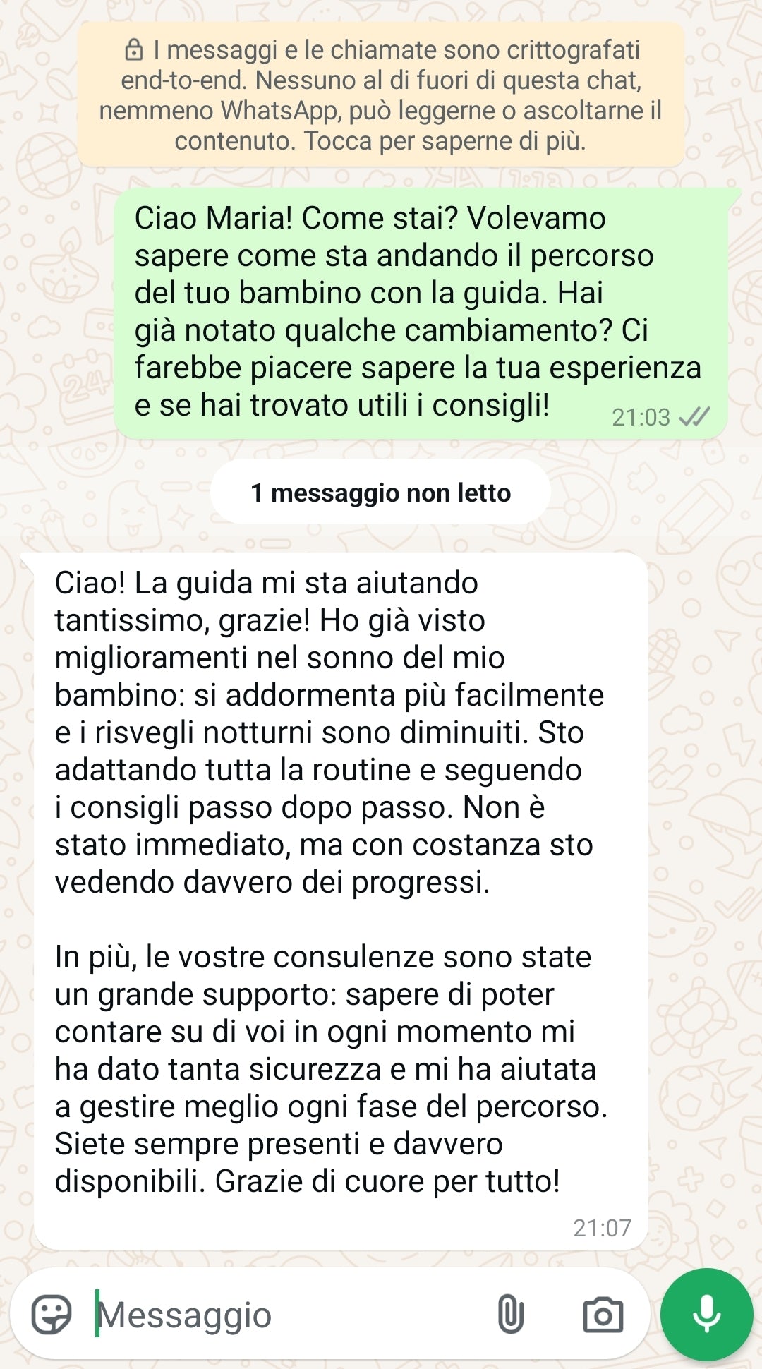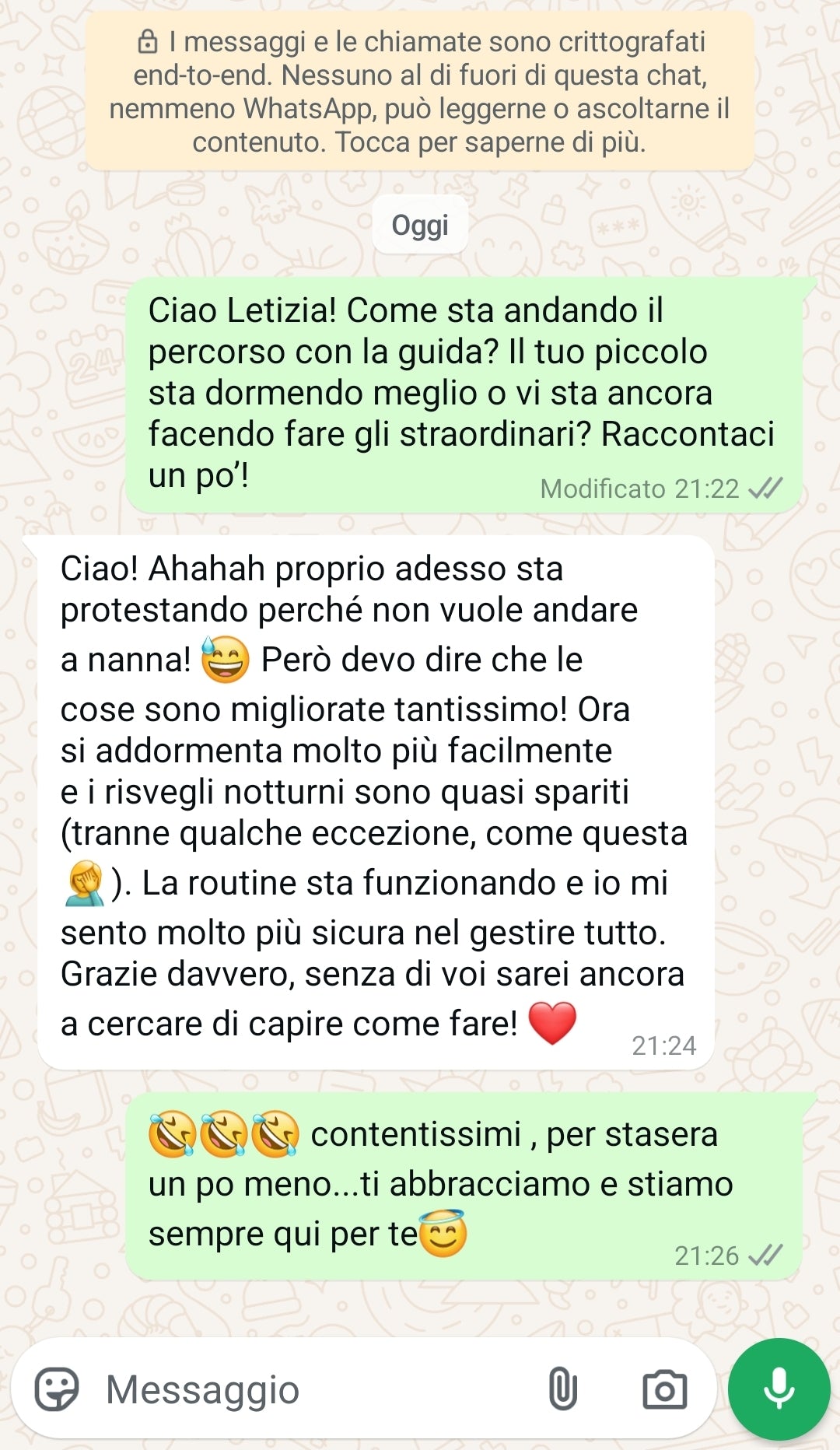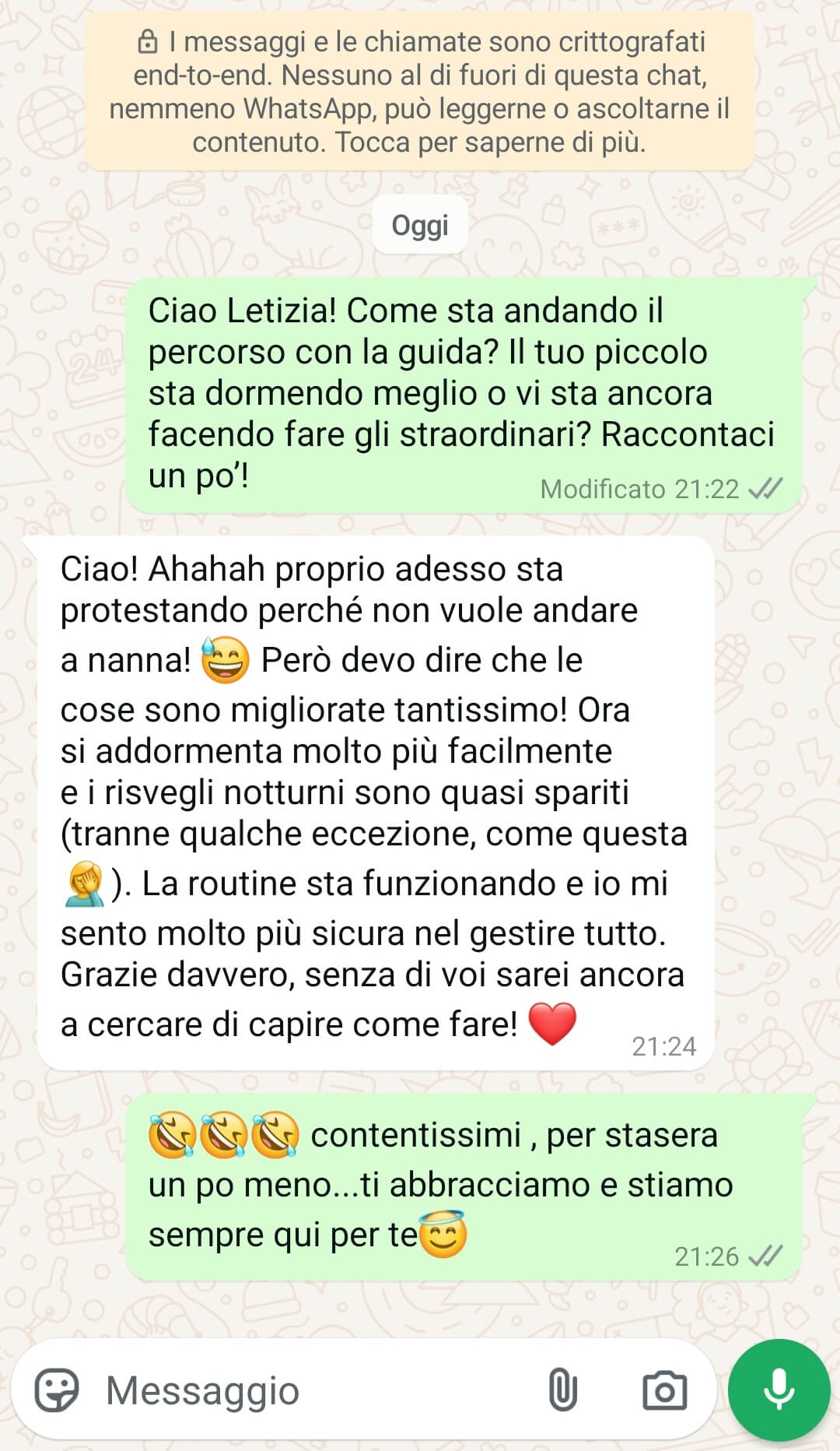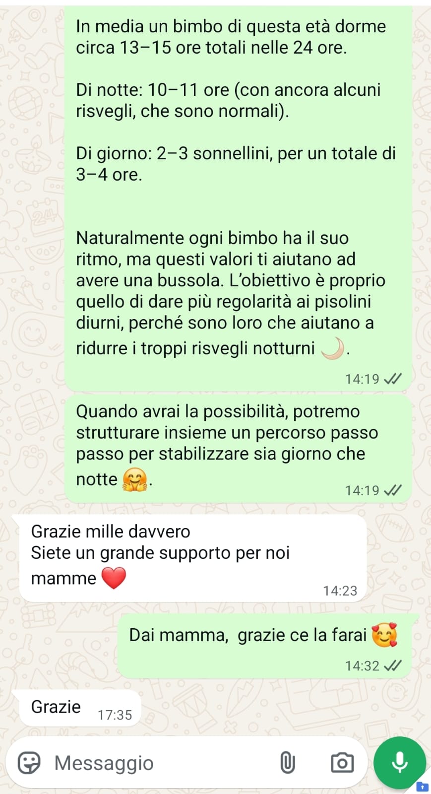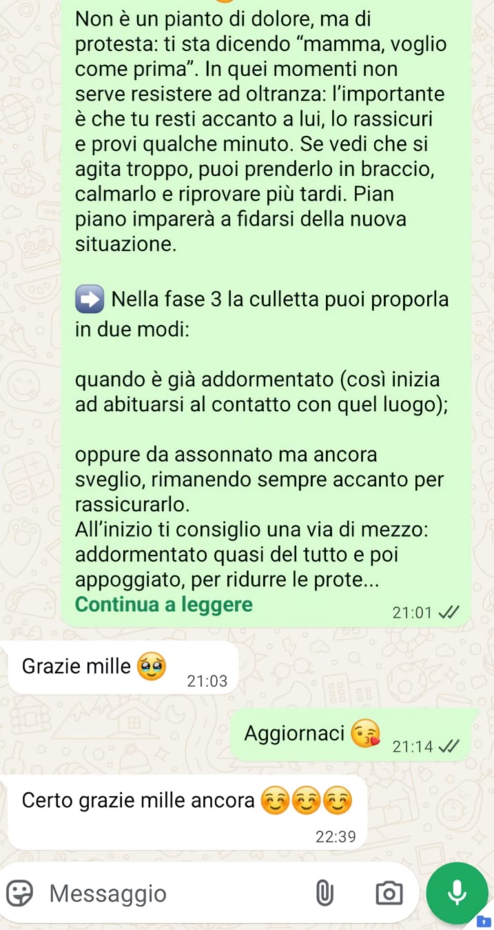 👩👩👦 60 giorni di consulenze personalizzate → supporto diretto e continuo dal nostro team, per costruire insieme un percorso su misura che accompagni il tuo bambino verso un sonno sereno e il tuo benessere quotidiano.
