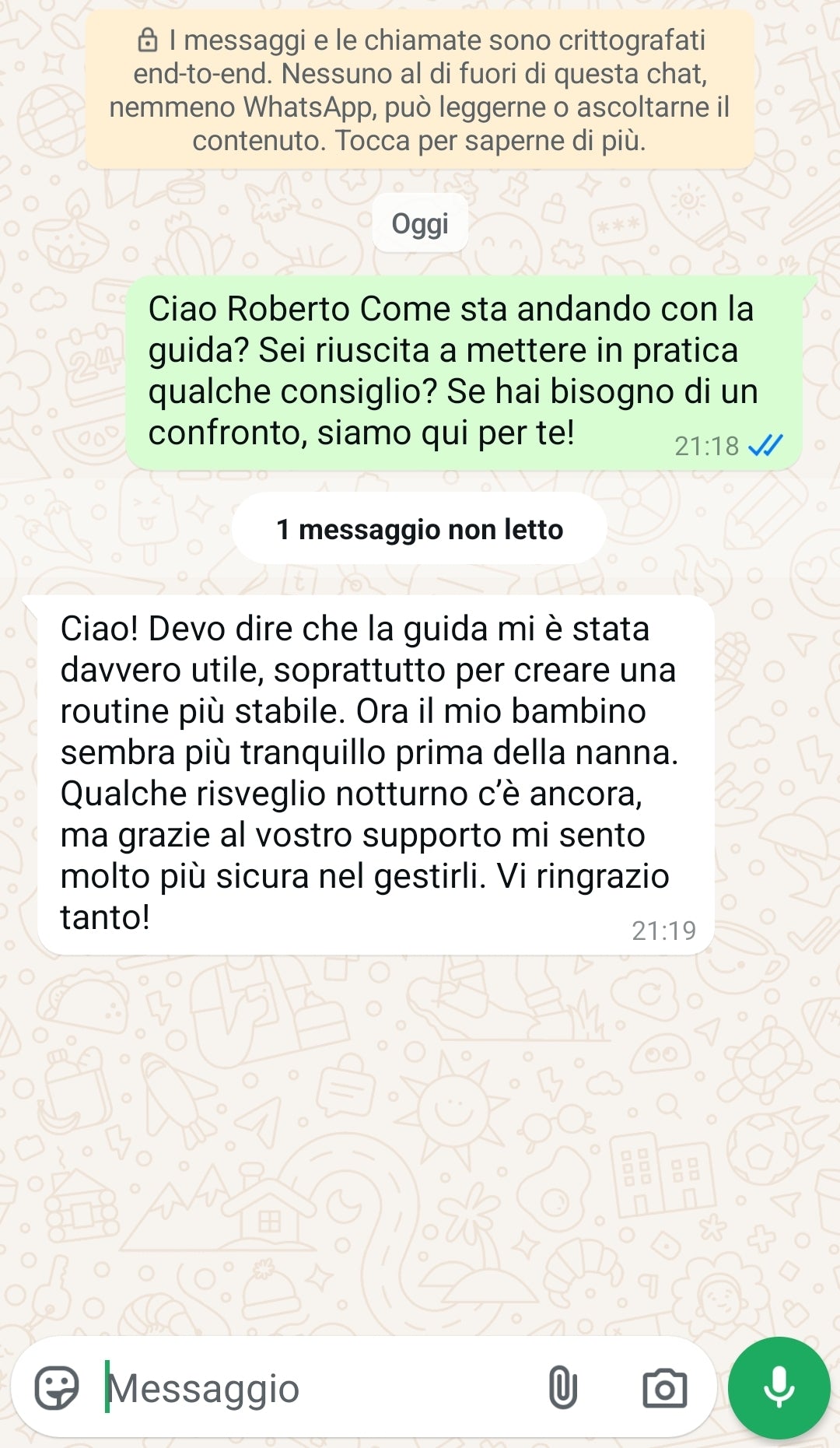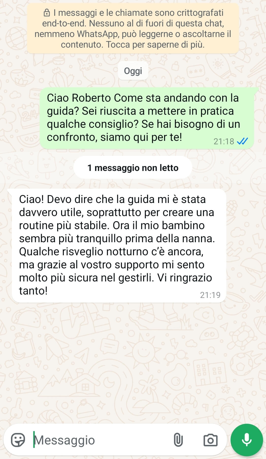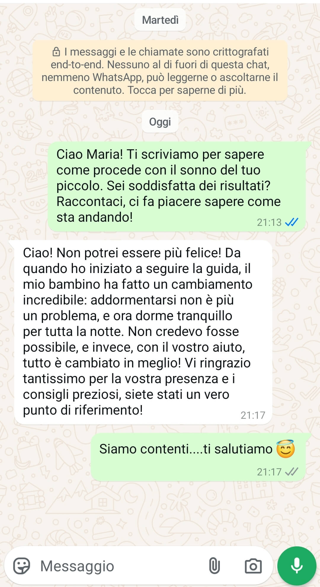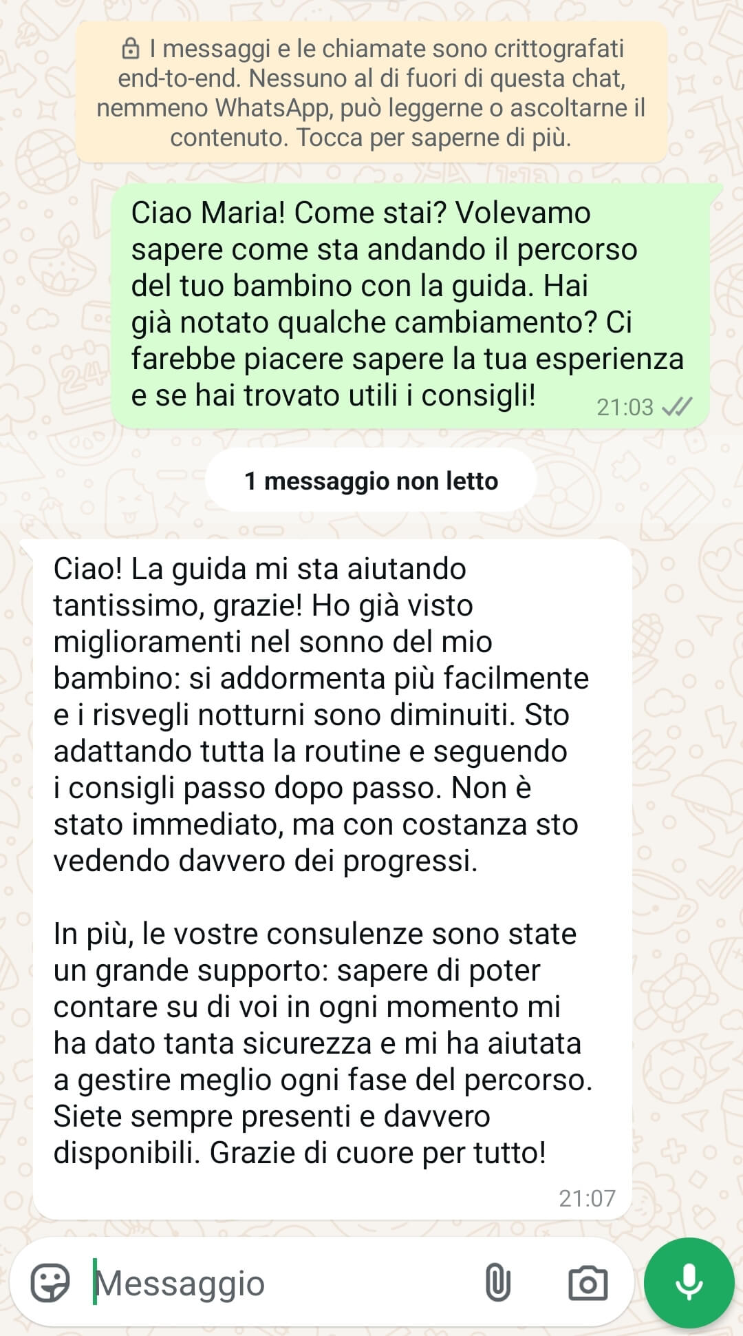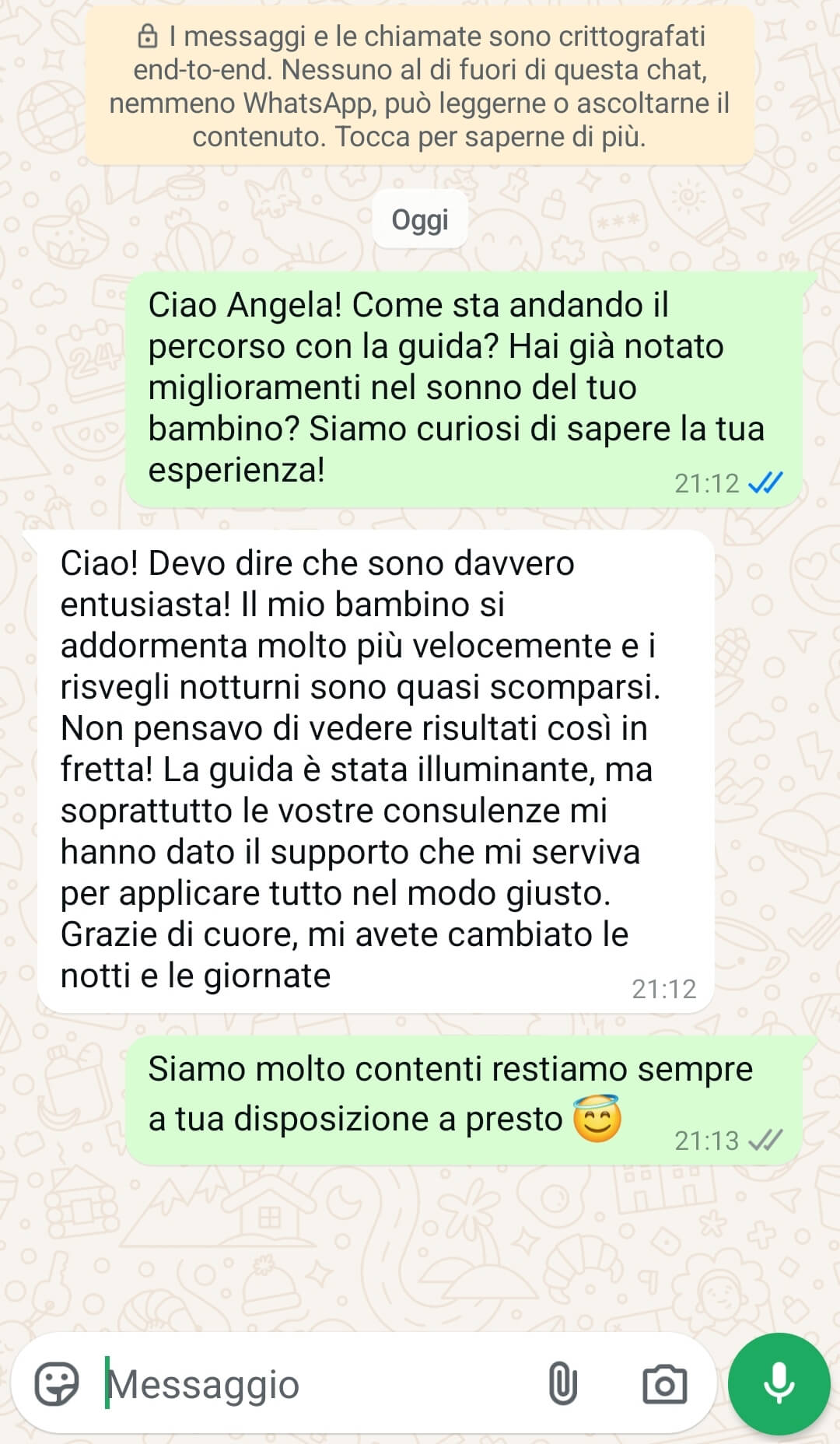👩👩👦 60 giorni di consulenze personalizzate → supporto diretto e continuo dal nostro team, per costruire insieme un percorso su misura che accompagni il tuo bambino verso un sonno sereno e il tuo benessere quotidiano.