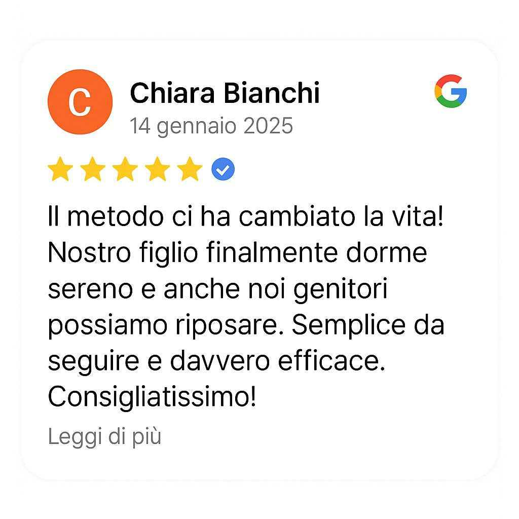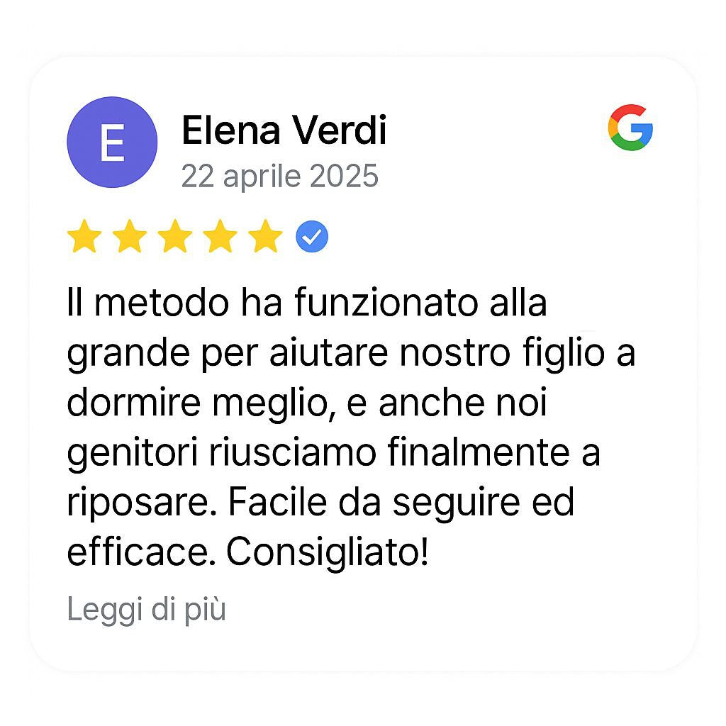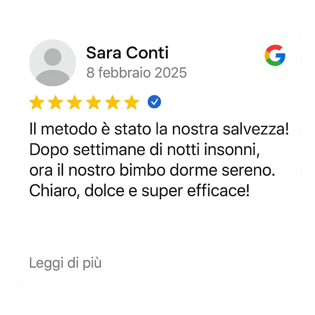 Il percorso che ha aiutato già centinaia di genitori e ti guiderà passo dopo passo verso un sonno più tranquillo, notti meno stressanti e giornate piene di energia, per te e per il tuo bambino.